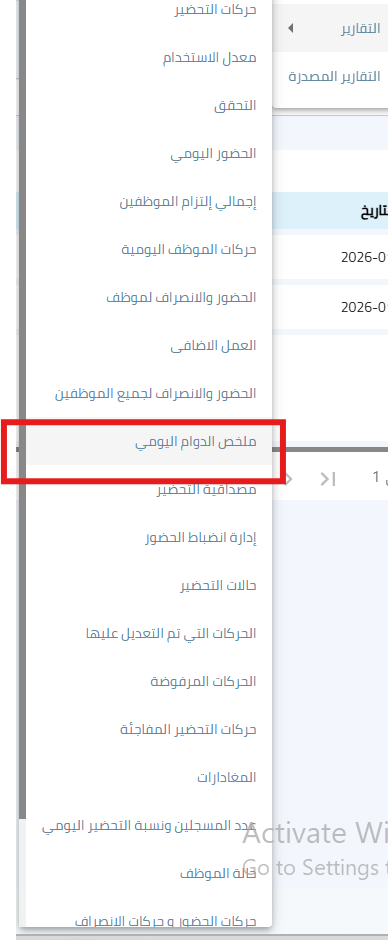 4. تقرير ملخص الدوام اليومي :( ميزة مدفوعه)