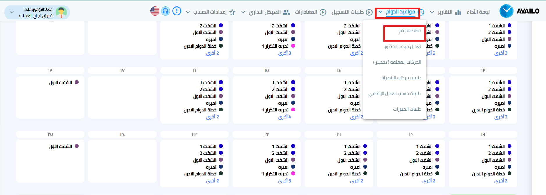 تتيح لك وحدة خطط العمل والمناوبات في نظام أفيلو
